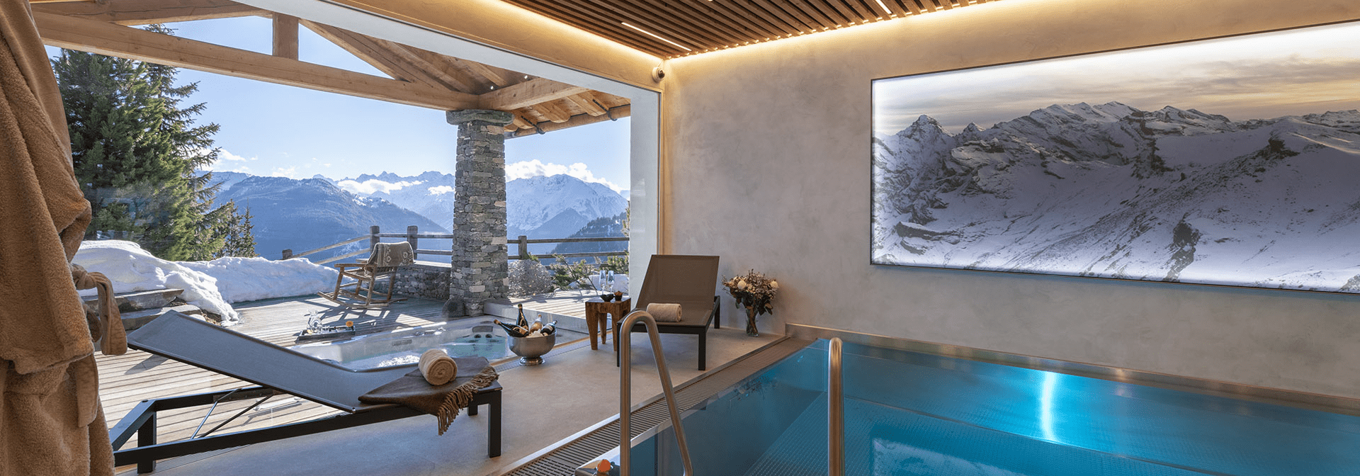 The Spa offers our guests a unique wellness area during their stay, featuring a swimming pool with a large south facing window, and a spectacular view of the Alps.